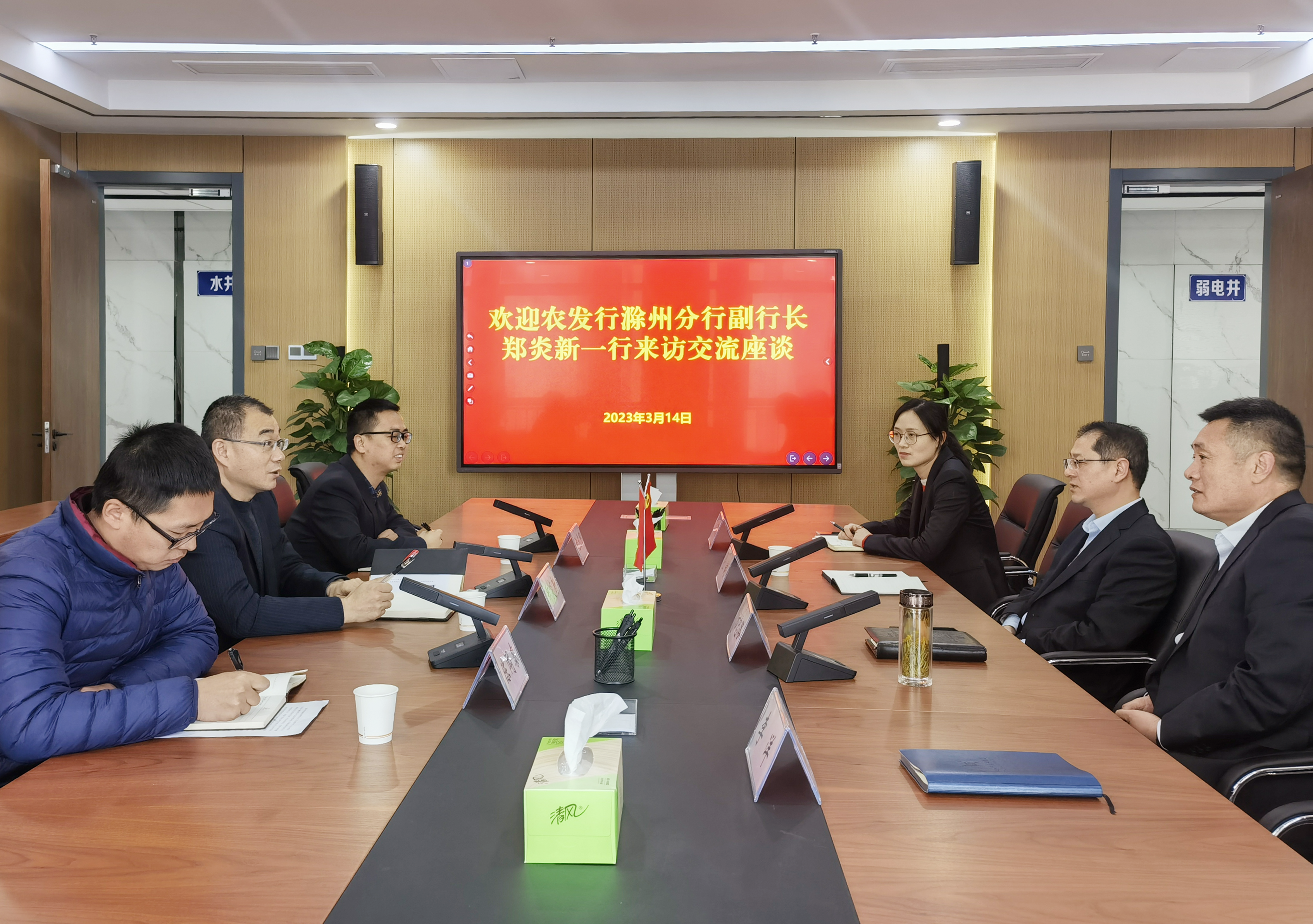 3月14日上午,農(nóng)發(fā)行滁州分行副行長鄭炎新一行到市擔(dān)保集團開展業(yè)務(wù)交流,市擔(dān)保集團副總經(jīng)理張健,總經(jīng)理助理方忠路及有關(guān)部室參加座談。