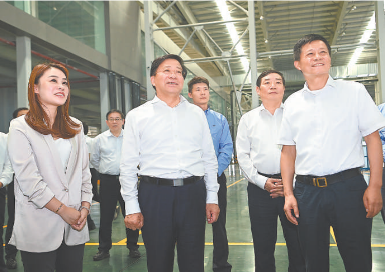8月31日,省委書記韓俊在滁州市鳳陽縣安徽福萊特光伏玻璃有限公司聽取企業(yè)生產(chǎn)經(jīng)營狀況介紹。本報(bào)記者 楊 竹 攝