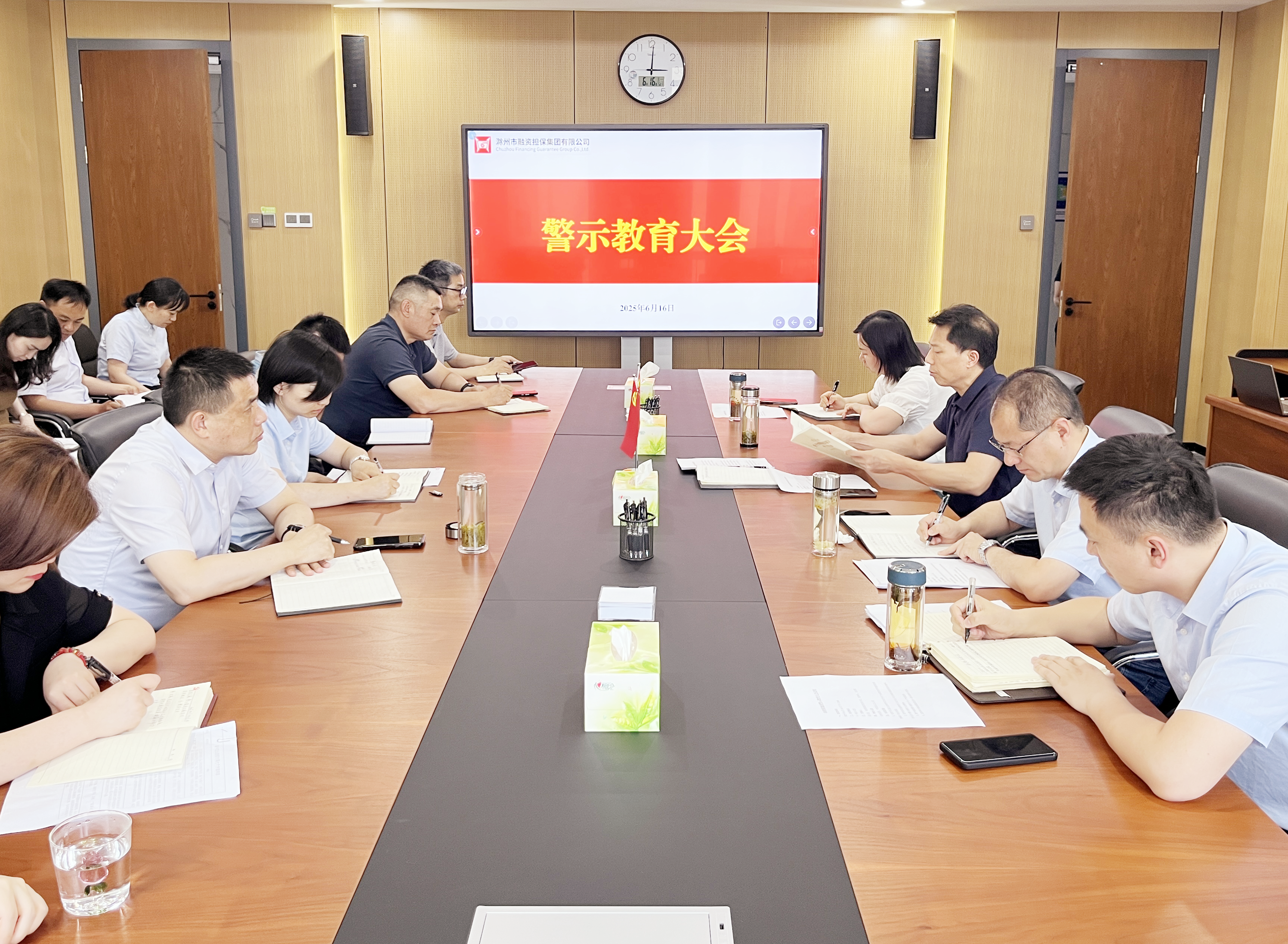 6月16日,市擔(dān)保集團(tuán)召開警示教育大會,黨委書記高文進(jìn)主持并講話,集團(tuán)及子公司全體干部職工參加會議。