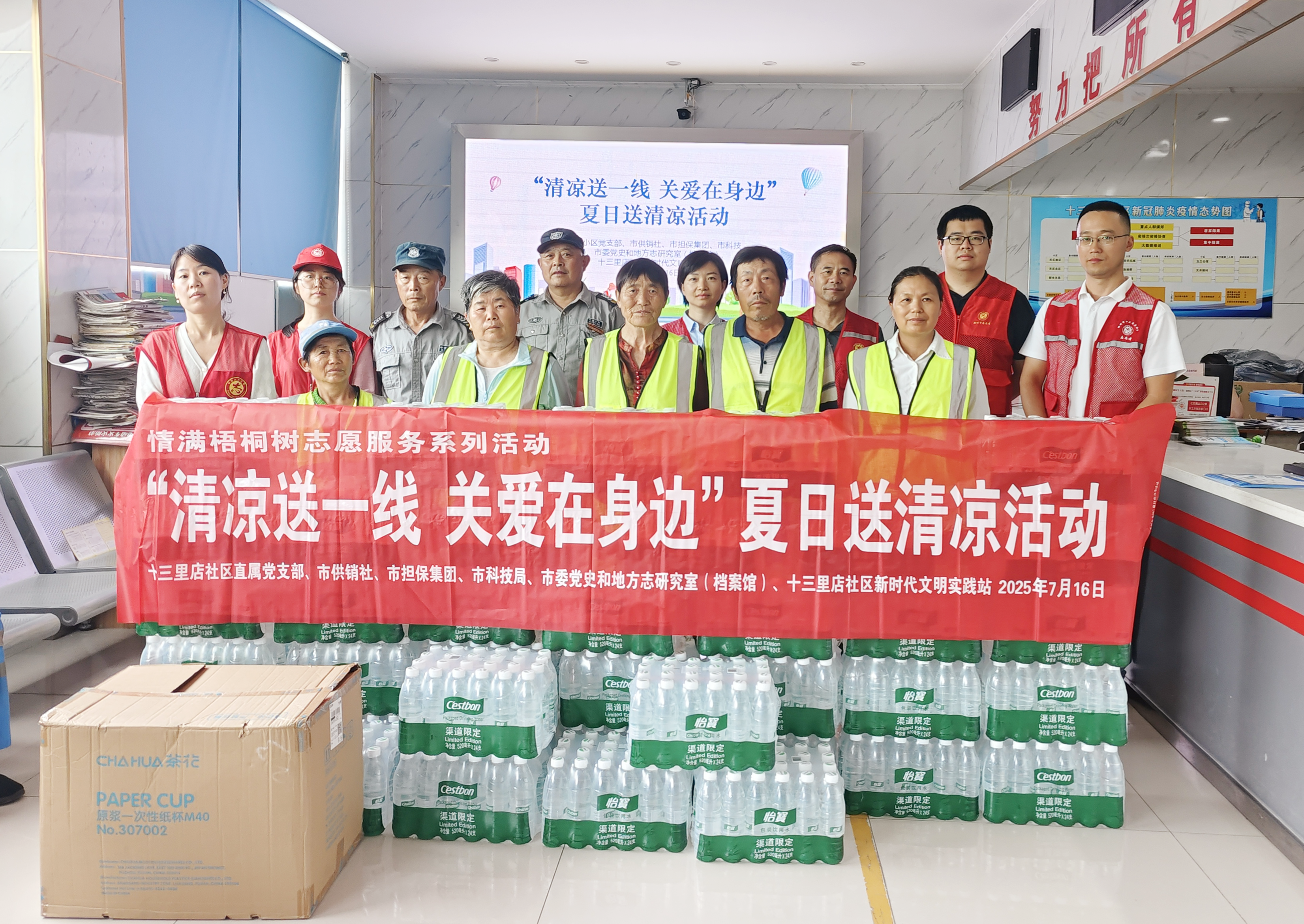 入夏以來,持續(xù)高溫炙烤大地,給戶外作業(yè)的環(huán)衛(wèi)工人帶來了嚴峻“烤”驗。為給炎炎夏日里高溫下作業(yè)的社區(qū)環(huán)衛(wèi)工人們送去一絲清涼和關(guān)愛,7月16日,市擔保集團三個黨支部聯(lián)合共建單位的黨組織,共同開展“清涼送一線 關(guān)愛在身邊”黨員志愿服務活動,為共建的十三里店社區(qū)全體環(huán)衛(wèi)工人送去黨組織的關(guān)懷與問候。