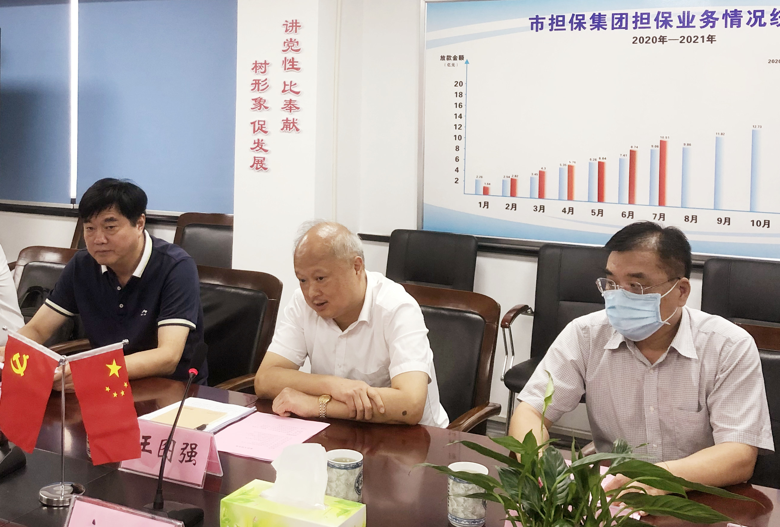 為深入調(diào)研我市金融機(jī)構(gòu)助力企業(yè)發(fā)展情況,8月16日下午,市人大常委會黨組書記、主任王圖強(qiáng)一行蒞臨市擔(dān)保集團(tuán)調(diào)研指導(dǎo),集團(tuán)黨委書記、董事長、總經(jīng)理高文進(jìn)及班子成員參加座談。