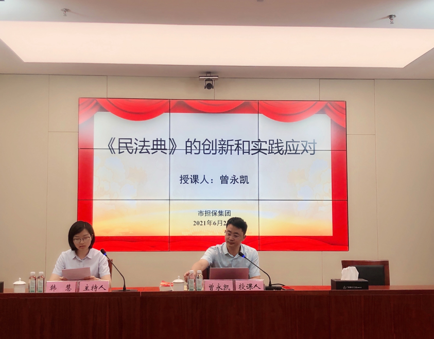 為慶祝建黨100周年,營造濃厚法治氛圍,進一步提高員工法律素養(yǎng),6月23日下午,市擔保集團邀請到滁州電大法學副教授、市理論宣講專家?guī)鞂<?、市“青年講師團”講師曾永凱,為集團全體干部職工帶來了一場精彩的《民法典》的創(chuàng)新和實踐應對專題培訓會。
