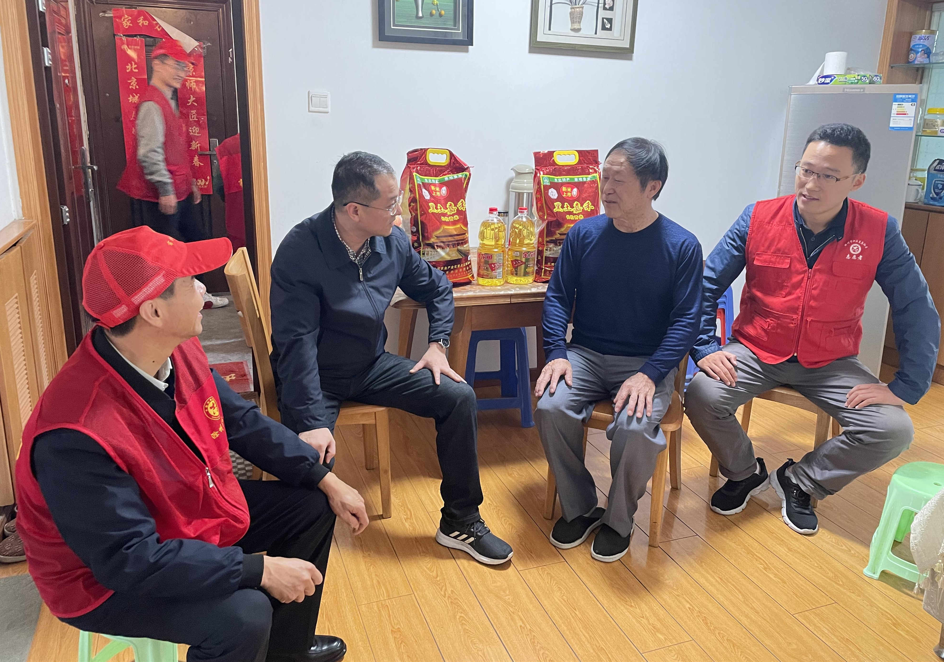 在社區(qū)工作人員陪同下,志愿者來到天樂小區(qū)司開祥同志、夏家富同志、甘運達同志等困難老黨員家中。每到一戶,張健與老黨員親切交談,仔細詢問老黨員的身體狀況和家庭情況,為老黨員送上米、油等節(jié)日慰問品,對老黨員致以深深的節(jié)日祝福,并叮囑老黨員天氣轉(zhuǎn)涼,注意保暖,保重身體。