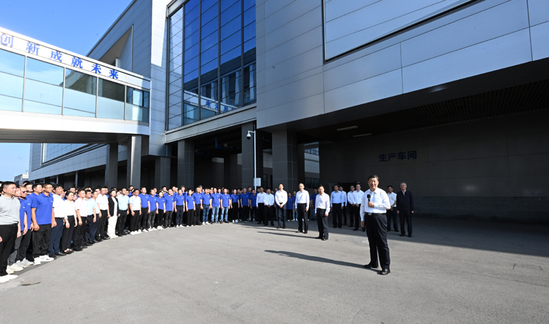 在車間外廣場上,習(xí)近平同企業(yè)員工們親切交流。習(xí)近平強(qiáng)調(diào),我國是制造大國,要努力提高自主創(chuàng)新能力,加快向制造強(qiáng)國轉(zhuǎn)變。中國要強(qiáng)大,各領(lǐng)域各方面都要強(qiáng)起來。全面建設(shè)社會(huì)主義現(xiàn)代化國家,實(shí)現(xiàn)中華民族偉大復(fù)興,前途是光明的,道路是曲折的,還會(huì)面臨許多激流險(xiǎn)灘,要勇于迎接各種風(fēng)險(xiǎn)挑戰(zhàn)。天上不會(huì)掉餡餅,一切成就都要通過我們共同拼搏來取得。大家都是“80后”、“90后”,正當(dāng)其時(shí),要有事業(yè)心、責(zé)任感,努力奮斗,到本世紀(jì)中葉全面建成社會(huì)主義現(xiàn)代化強(qiáng)國之時(shí),大家一定會(huì)為“強(qiáng)國圓夢、功成有我”而感到自豪。