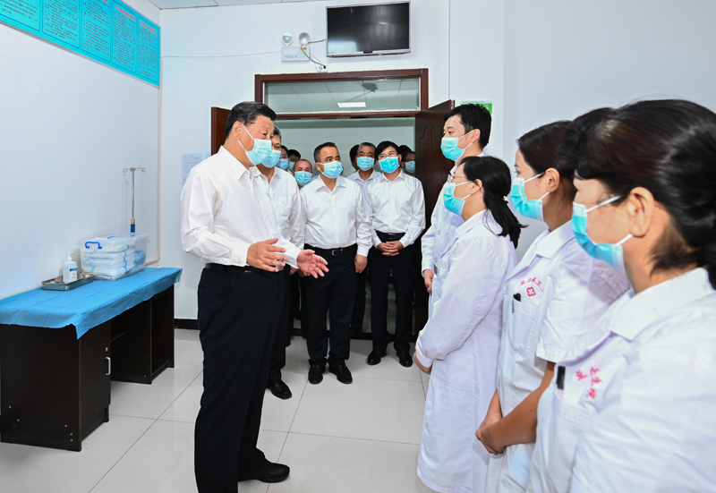 7月12日至15日,中共中央總書(shū)記、國(guó)家主席、中央軍委主席習(xí)近平在新疆考察。這是14日,習(xí)近平在吐魯番市高昌區(qū)亞爾鎮(zhèn)新城片區(qū)新城西門村黨群服務(wù)中心醫(yī)務(wù)室考察。新華社記者 燕雁 攝