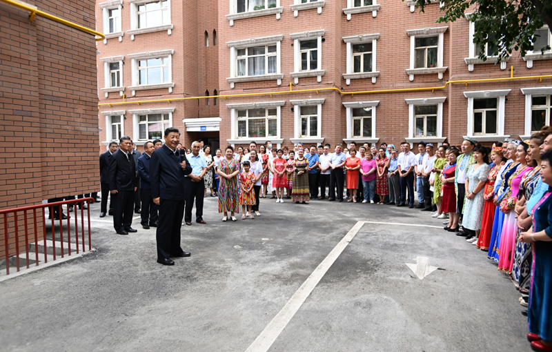 7月12日至15日,中共中央總書(shū)記、國(guó)家主席、中央軍委主席習(xí)近平在新疆考察。這是13日上午,習(xí)近平在烏魯木齊市天山區(qū)固原巷社區(qū)考察時(shí),同各族群眾在一起。新華社記者 謝環(huán)馳 攝