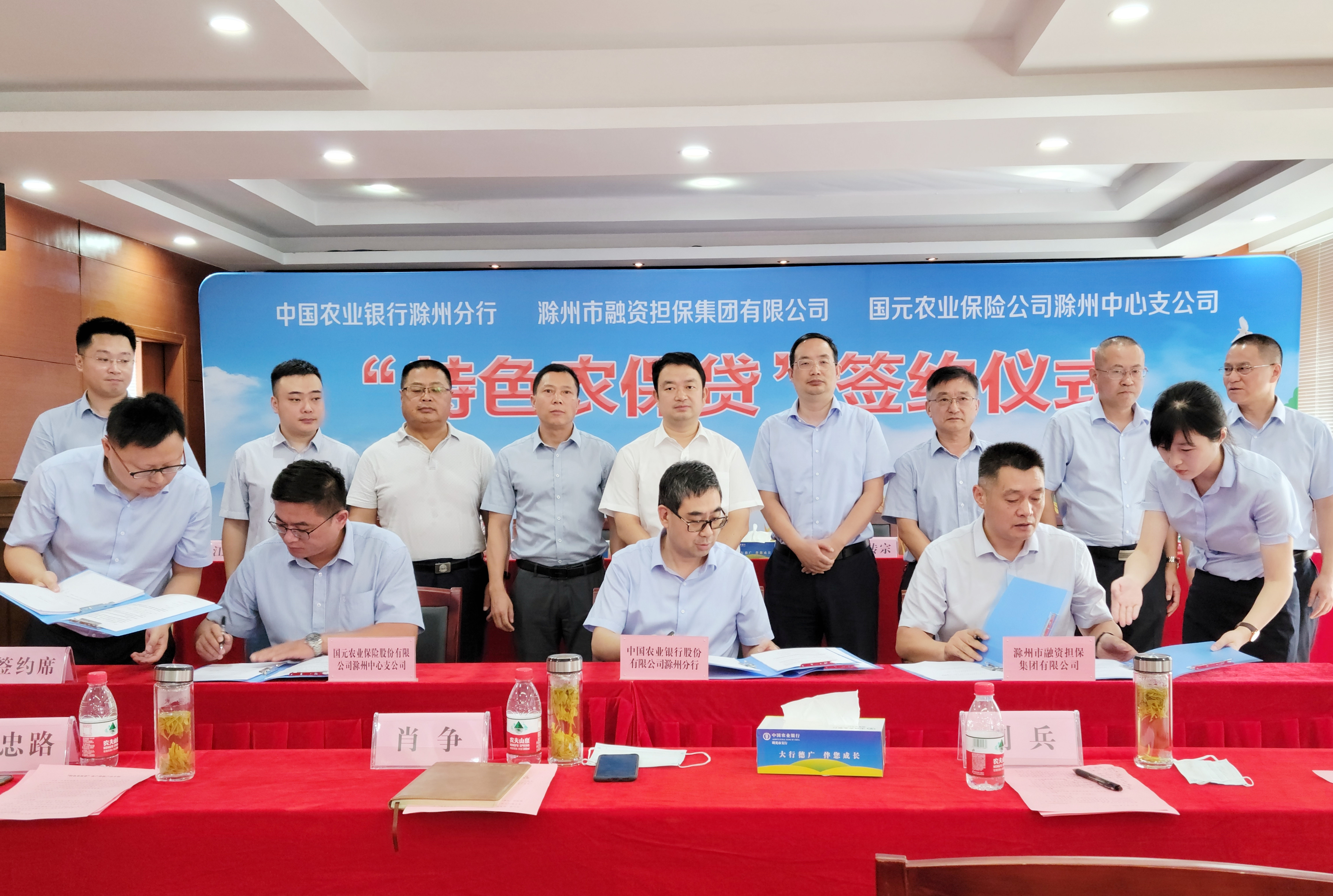 簽約儀式開(kāi)始前,農(nóng)行滁州分行、國(guó)元農(nóng)保分別介紹了農(nóng)行及國(guó)元農(nóng)保經(jīng)營(yíng)概況,并就“特色農(nóng)保貸”業(yè)務(wù)模式及開(kāi)展情況作了說(shuō)明。市擔(dān)保集團(tuán)就農(nóng)擔(dān)業(yè)務(wù)開(kāi)展情況及下一步工作安排作說(shuō)明。